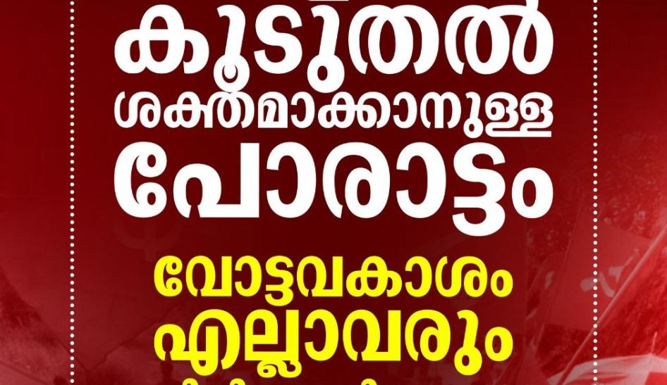 ഇന്നത്തെ കേരളം കൂടുതല്‍ ശക്തമായി നിലനിര്‍ത്തിക്കൊണ്ടുപോകാനും നവകേരള സ്വപ്‌നങ്ങള്‍ യാഥാര്‍ഥ്യമാക്കാനുമുള്ള പോരാട്ടമാണെന്ന്‌ മനസിലാക്കി നിയമസഭ തെരഞ്ഞെടുപ്പില്‍ ജനാധിപത്യ വോട്ടവകാശം ഏവരും വിനിയോഗിക്കണം.