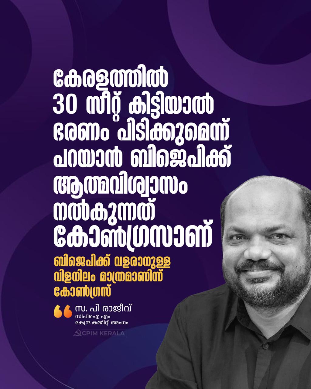 വാക്കൊന്ന് പ്രവൃത്തിയൊന്ന് എന്നത് കോൺഗ്രസ് ദീർഘകാലമായി സ്വീകരിച്ചുവരുന്ന നയമാണ്. ബിജെപിക്ക് വളരാനുള്ള വിളനിലം മാത്രമാണിന്ന് കോൺഗ്രസ്. മൂപ്പെത്തുന്ന ഘട്ടത്തിൽ ബിജെപി അക്കൂട്ടത്തിൽ നിന്ന് വിളവെടുക്കുന്നു. മറ്റത്തൂർ മോഡൽ ബിജെപിയുടെ ഏറ്റവും പുതിയ വിളവെടുപ്പാണ്. മുഴുവൻ ജനാധിപത്യ വിശ്വാസികൾക്കുമുള്ള ഒരു മുന്നറിയിപ്പ് കൂടിയാണിത്. കോൺഗ്രസ് താൽക്കാലികമായി മാത്രം മധുരിക്കുന്ന വിഷമായിമാറിക്കഴിഞ്ഞു.