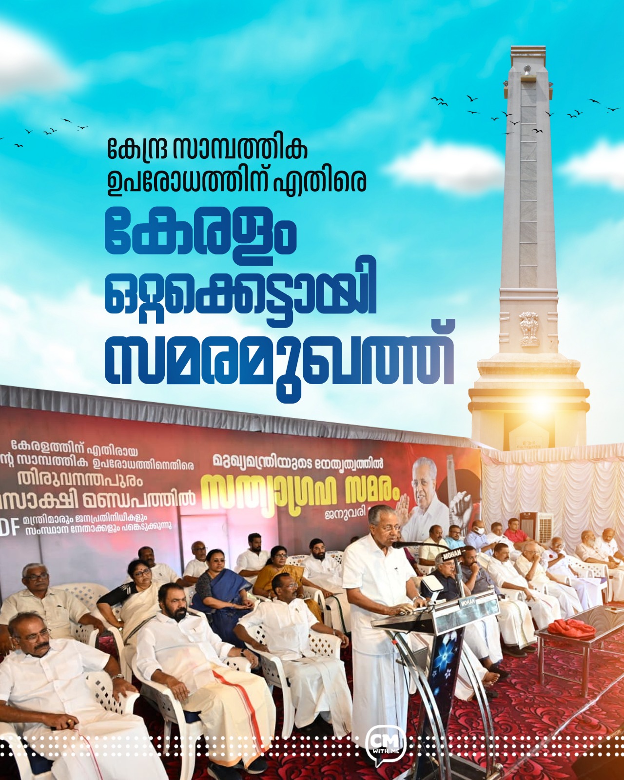 കേരളത്തിനെതിരായ കേന്ദ്രസർക്കാരിന്റെ സാമ്പത്തിക ഉപരോധത്തിനെതിരെ തിരുവനന്തപുരം രക്തസാക്ഷി മണ്ഡപത്തിൽ മുഖ്യമന്ത്രിയുടെ നേതൃത്വത്തിൽ സത്യാഗ്രഹ സമരം നടന്നു