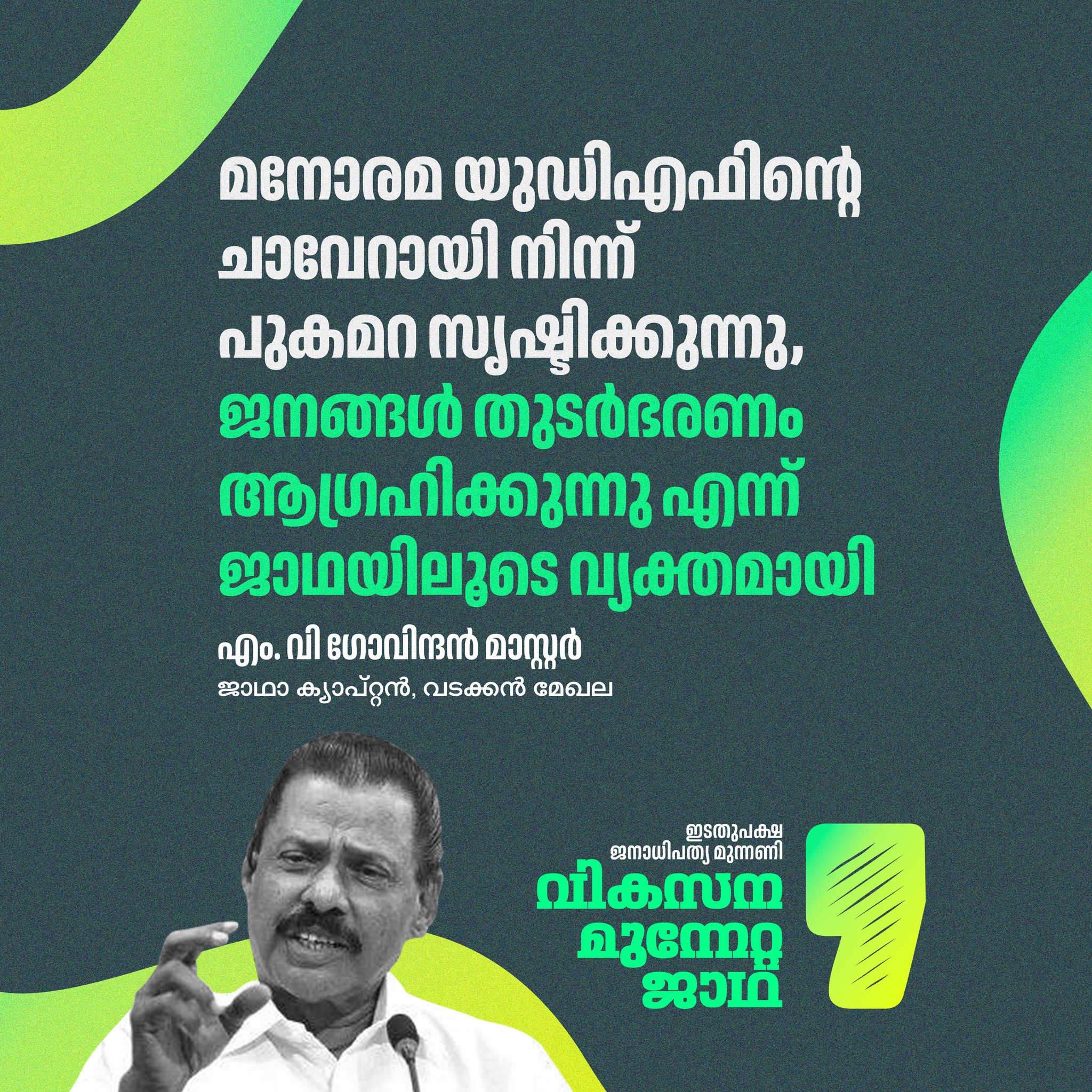 മനോരമ യുഡിഎഫിന്റെ ചാവേറായി നിന്ന് പുകമറ സൃഷ്ടിക്കുന്നു. ജനങ്ങൾ തുടർഭരണം ആഗ്രഹിക്കുന്നു എന്ന് ജാഥയിലൂടെ വ്യക്തമായി.