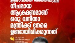 എല്‍ഡിഎഫിനെ രാഷ്ട്രീയമായി എതിര്‍ക്കാന്‍ പറ്റാത്തതിനാല്‍ മന്ത്രിയെതന്നെ കായികമായി ആക്രമിച്ച്‌ കൊലപ്പെടുത്താന്‍ ശ്രമിക്കുന്ന ഹീനമായ മാര്‍ഗമാണ്‌ കോണ്‍ഗ്രസ്‌ സ്വീകരിച്ചിട്ടുള്ളത്‌. ഇത്‌ അങ്ങേയറ്റം പ്രതിഷേധാര്‍ഹവും, അപലപനീയവുമാണ്‌. കേരളത്തിന്റെ ചരിത്രത്തില്‍ ആദ്യമായാണ്‌ ഒരു വനിതാ മന്ത്രി ആക്രമിക്കപ്പെടുന്നത്‌. വരുന്ന നിയമസഭ തെരഞ്ഞെടുപ്പില്‍ നേരിടാന്‍ പോകുന്ന പരാജയഭീതിയാണ്‌ ഒരു തരത്തിലും ന്യായീകരിക്കാനാകാത്ത വിധമുള്ള അക്രമ സമരങ്ങള്‍ക്ക്‌ യുഡിഎഫിനേയും, കോണ്‍ഗ്രിനേയും പ്രേരിപ്പിക്കുന്നത്‌.