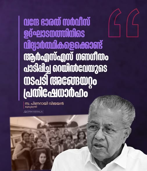 എറണാകുളം - ബംഗളൂരു വന്ദേ ഭാരത് സർവീസ് ഉദ്ഘാടനത്തിനിടെ വിദ്യാർത്ഥികളെക്കൊണ്ട് ആർഎസ്എസ് ഗണഗീതം പാടിപ്പിച്ച ദക്ഷിണ റെയില്‍വേയുടെ നടപടി അങ്ങേയറ്റം പ്രതിഷേധാർഹം