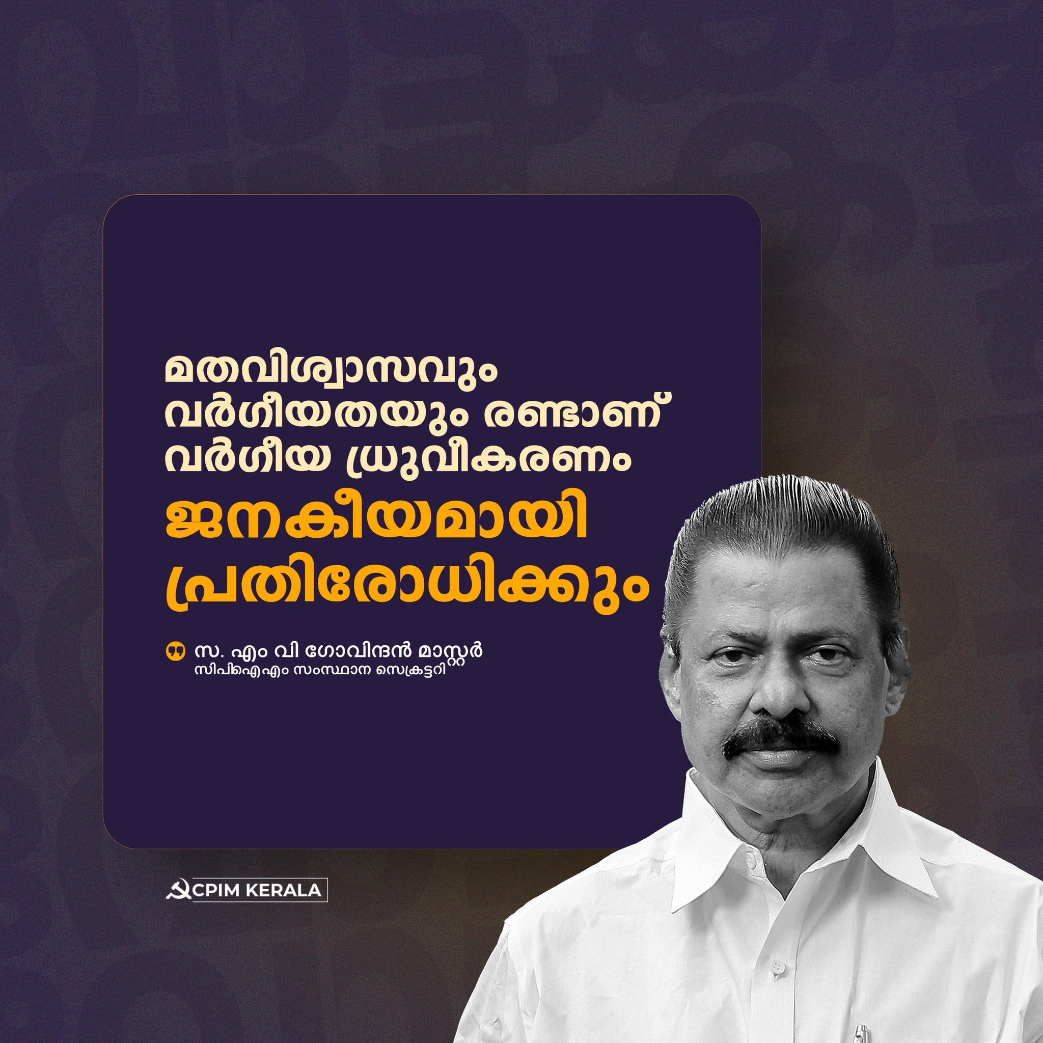 മതവിശ്വാസവും വർഗീയതയും രണ്ടാണ് എന്ന യാഥാർത്ഥ്യം ജനങ്ങൾക്ക് മുന്നിൽ വെക്കാൻ സാധിക്കണം. ഭൂരിപക്ഷ വർഗീയതയായാലും ന്യൂനപക്ഷ വർഗീയതയായാലും അതിനെതിരായ പോരാട്ടത്തിൽ എല്ലാ മതവിശ്വാസികളെയും ഫലപ്രദമായി അണിനിരത്തിയാൽ മാത്രമേ വർഗീയതയെ ഒറ്റപ്പെടുത്താൻ സാധിക്കൂ. ഇതാണ് യാഥാർത്ഥ്യം. മതവിശ്വാസിയായ ഗാന്ധിജിയെ മതരാഷ്ട്രവാദികളായ ഹിന്ദുത്വ ശക്തികൾ വെടിവെച്ചു കൊന്നത് ഇതിന്റെ വലിയ തെളിവാണ്. ഗാന്ധിജിയും ഗോഡ്സെയും തമ്മിലുള്ള വ്യത്യാസമാണ് യഥാർത്ഥ മതവിശ്വാസവും വർഗീയതയും തമ്മിലുള്ളതെന്ന് തിരിച്ചറിയണം.