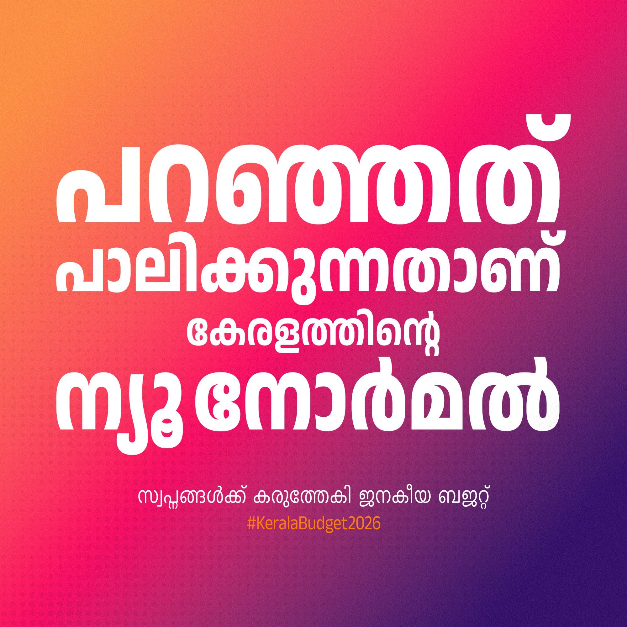 നാടിൻ്റെ മുഖച്ഛായ മാറുന്ന വികസന കുതിപ്പും ഓരോ മനുഷ്യനെയും കരുതലോടെ കാക്കുന്ന ക്ഷേമപ്രവർത്തനങ്ങളും സമന്വയിക്കുന്ന ബജറ്റാണ് ഇന്ന് ധനമന്ത്രി നിയമസഭയിൽ അവതരിപ്പിച്ചത്. ആധുനിക സമൂഹ സൃഷ്ടിക്കായുള്ള ജനകീയ ബജറ്റ് കേന്ദ്രം സാമ്പത്തികമായി ശ്വാസം മുട്ടിക്കുമ്പോഴും തനത് ബദൽ മാർഗ്ഗങ്ങളിലൂടെ കുതിക്കാനാവുമെന്ന ഒരു നാടിൻ്റെ ധീരമായ പ്രഖ്യാപനമാണ്.