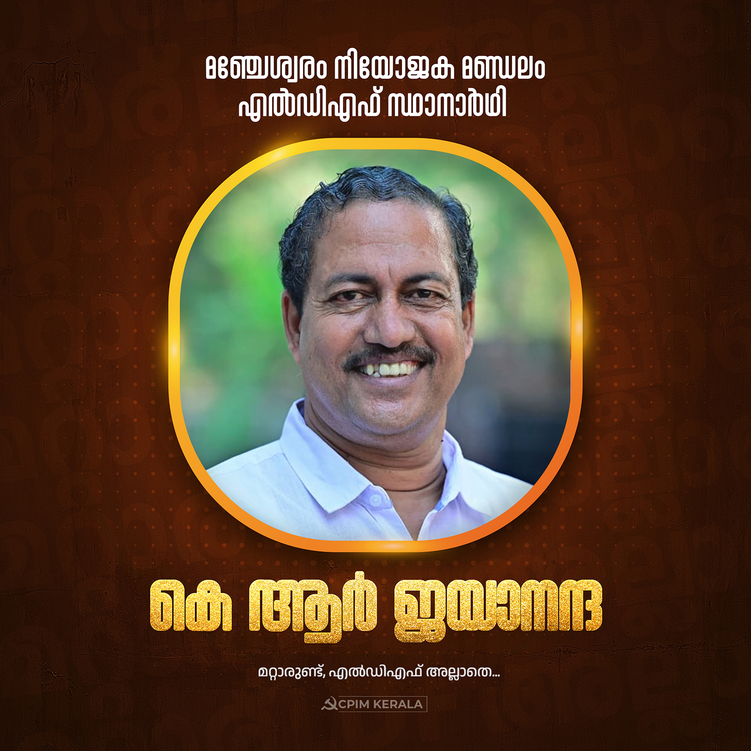 മഞ്ചേശ്വരം നിയോജക മണ്ഡലം എൽഡിഎഫ് സ്ഥാനാർഥി കെ ആർ ജയാനന്ദ