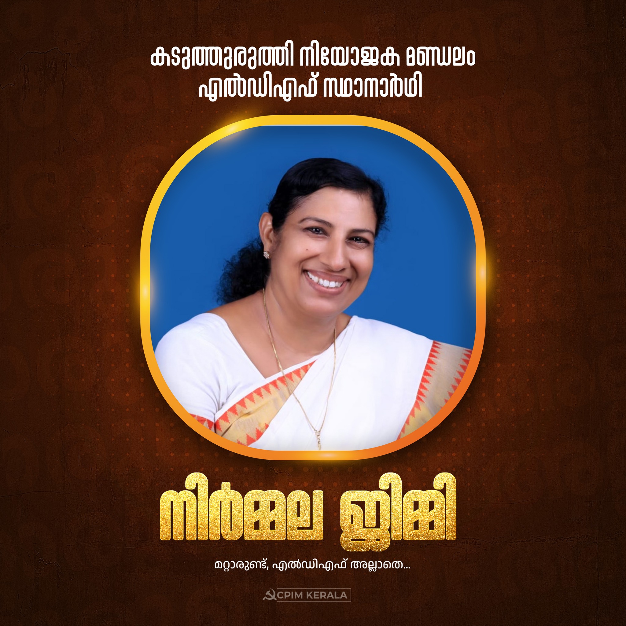 കടുത്തുരുത്തി നിയോജക മണ്ഡലം എൽഡിഎഫ് സ്ഥാനാർഥി നിർമ്മല ജിമ്മി