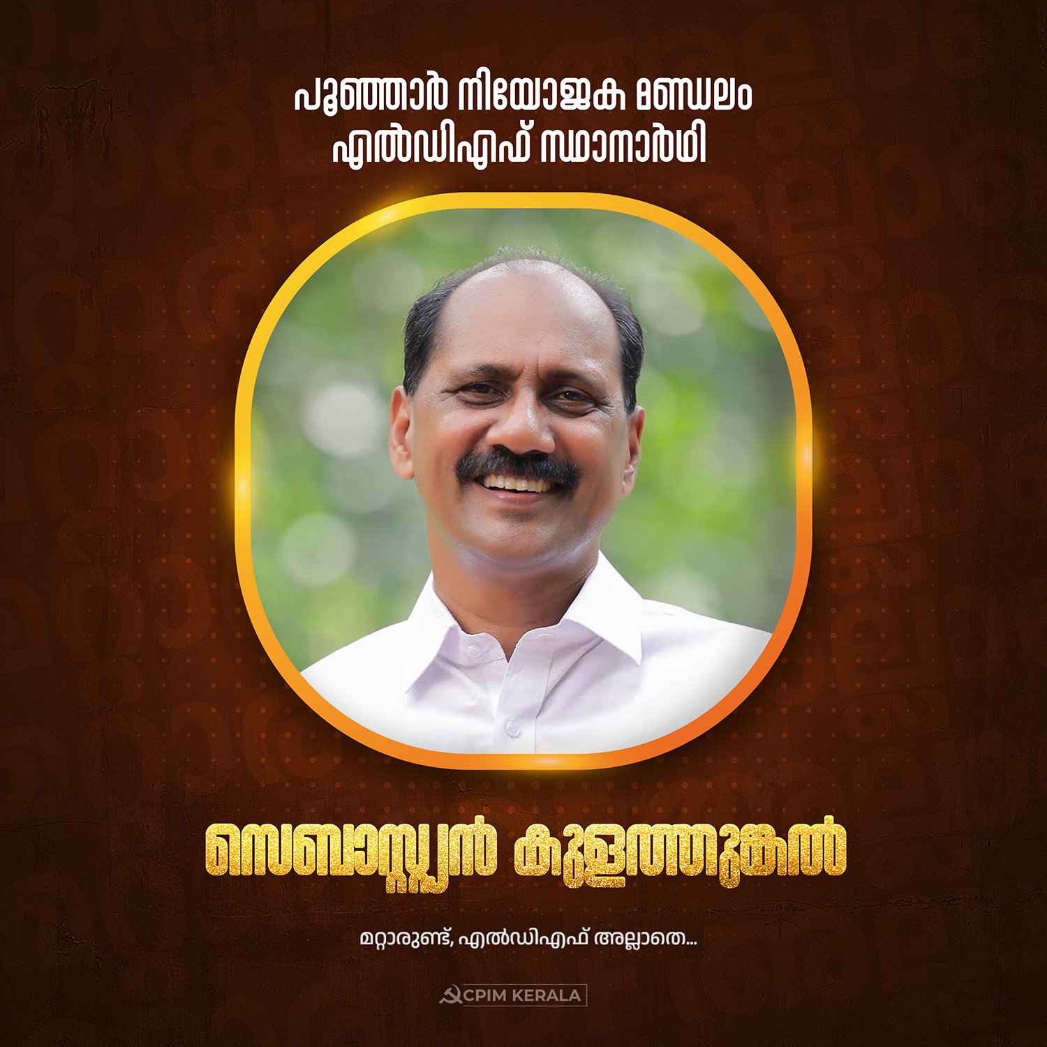 പൂഞ്ഞാർ നിയോജക മണ്ഡലം എൽഡിഎഫ് സ്ഥാനാർഥി സെബാസ്റ്റ്യൻ കുളത്തുങ്കൽ