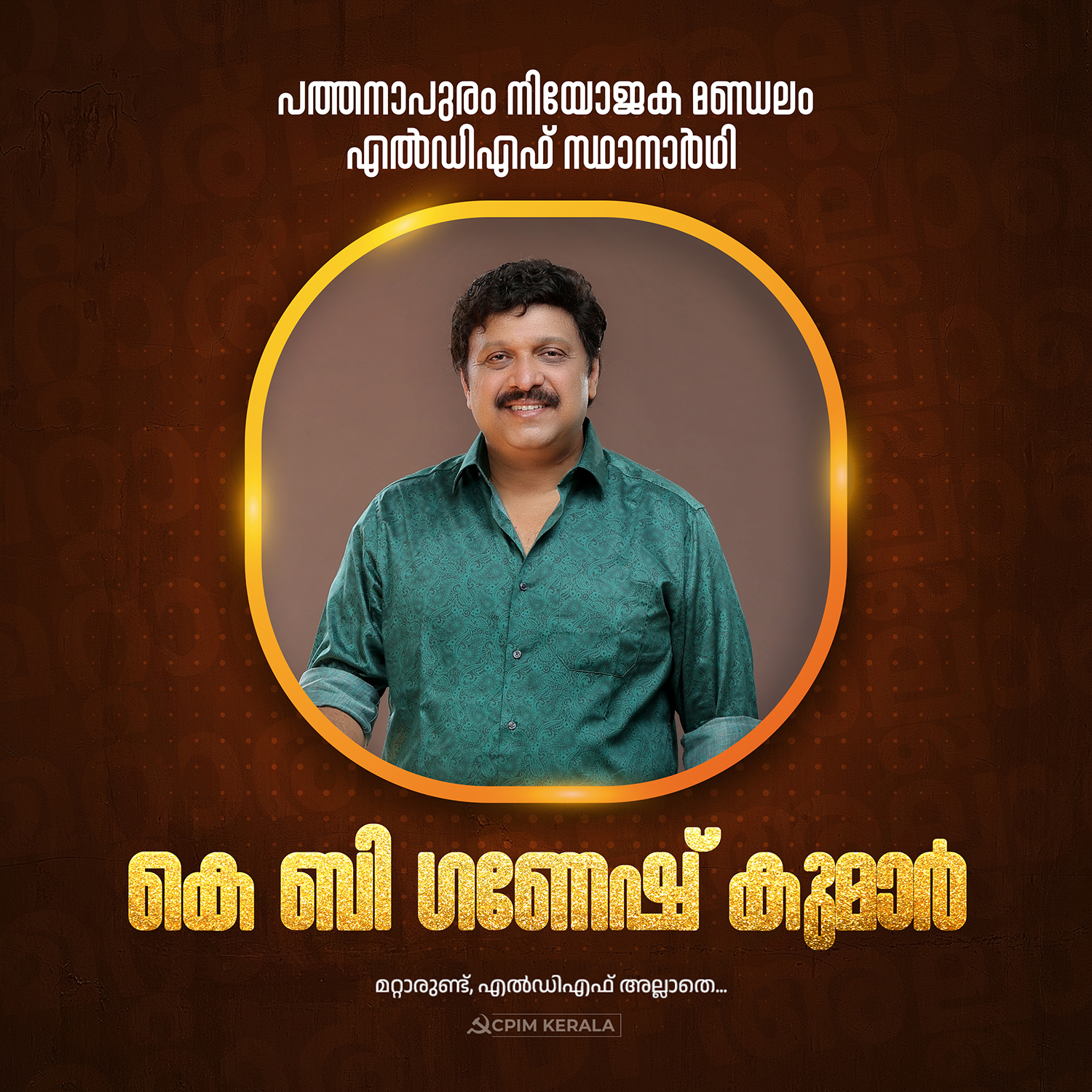 പത്തനാപുരം നിയോജക മണ്ഡലം എൽഡിഎഫ് സ്ഥാനാർഥി കെ ബി ഗണേഷ് കുമാർ