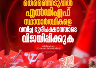 ഏപ്രില് 9-ന് നടക്കുന്ന നിയമസഭാ തെരഞ്ഞെടുപ്പില് എല്.ഡി.എഫ് സ്ഥാനാര്ത്ഥികളെ വമ്പിച്ച ഭൂരിപക്ഷത്തോടെ വിജയിപ്പിക്കുക