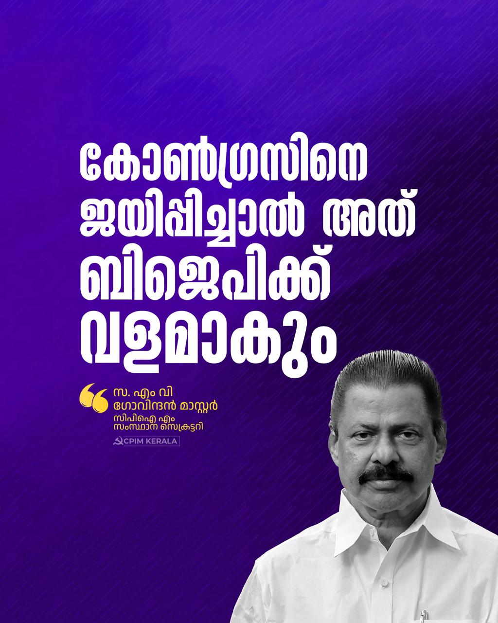 കോൺഗ്രസിനെ ജയിപ്പിച്ചാൽ അത് ബിജെപിക്ക് വളമാകും. എൽഡിഎഫ് ഏറ്റവും വലിയ ഒറ്റക്കക്ഷിയായി ഭരിക്കാനിരുന്ന മറ്റത്തൂർ പഞ്ചായത്തിലാണ് കോൺഗ്രസ് അംഗങ്ങളെല്ലാം കാലുമാറിയത്. അവിടെ കോൺഗ്രസിന്റെ ജില്ലാ ജനറൽ സെക്രട്ടറിയുടെ ഉൾപ്പടെയുള്ള പൂർണപിന്തുണയോടെയാണ് ഈ കൂറുമാറ്റം. ഏത് നിമിഷവും ഏതു കോൺഗ്രസുകാരനും ബിജെപിയിലേക്ക് ചേക്കേറാം എന്നാണ് ഇത് മനസിലാക്കിത്തരുന്നത്.