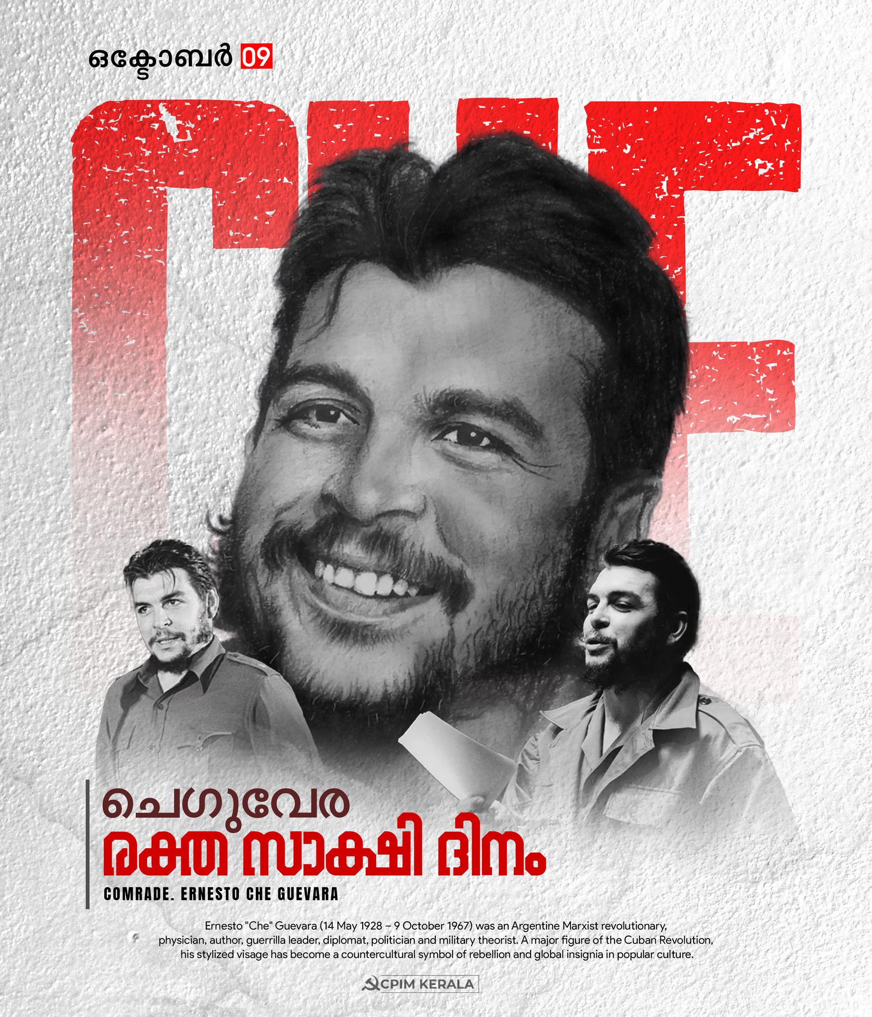 വിപ്ലവ നക്ഷത്രം ചെ എന്ന 'ഏർണസ്റ്റോ ഗുവേര ഡി ലാ സെർന'യുടെ അൻപത്തിയെട്ടാം രക്തസാക്ഷി ദിനമാണിന്ന്. അർജന്റീനയിൽ റൊസാരിയോയിൽ ജനിച്ച മാർക്സിസ്റ്റ് വിപ്ലവകാരിയും ഗറില്ലസമരതന്ത്രങ്ങളുടെ കിടയറ്റനേതാവും ക്യൂബൻ വിമോചനപ്പോരാട്ടത്തിൽ ഫിദൽ കാസ്ട്രോയുടെ ഉറ്റ സഹായിയും ആയിരുന്നു ചെഗുവേര. ക്യൂബൻ വിപ്ലവത്തിന്റെ വിജയത്തിനുശേഷം ക്യൂബയുടെ സോഷ്യലിസ്റ്റ് പുന:സംഘടനയിലും പ്രധാന ചുമതലകൾ ചെ വഹിച്ചു. അടിച്ചമർത്തുന്ന ഭരണകൂടങ്ങളെ തുടച്ചുമാറ്റുവാൻ ഒളിപ്പോരുൾപ്പെടെയുള്ള സായുധ സമരമാർഗ്ഗങ്ങളും ആശ്രയിക്കാവുന്നതാണ് എന്ന് അദ്ദേഹം എക്കാലവും വിശ്വസിച്ചു.