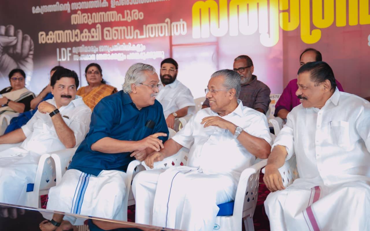 കേരളത്തിനെതിരായ കേന്ദ്രസർക്കാരിന്റെ സാമ്പത്തിക ഉപരോധത്തിനെതിരെ തിരുവനന്തപുരം രക്തസാക്ഷി മണ്ഡപത്തിൽ മുഖ്യമന്ത്രിയുടെ നേതൃത്വത്തിൽ സത്യാഗ്രഹ സമരത്തിന് ആവേശോജ്ജ്വല തുടക്കം