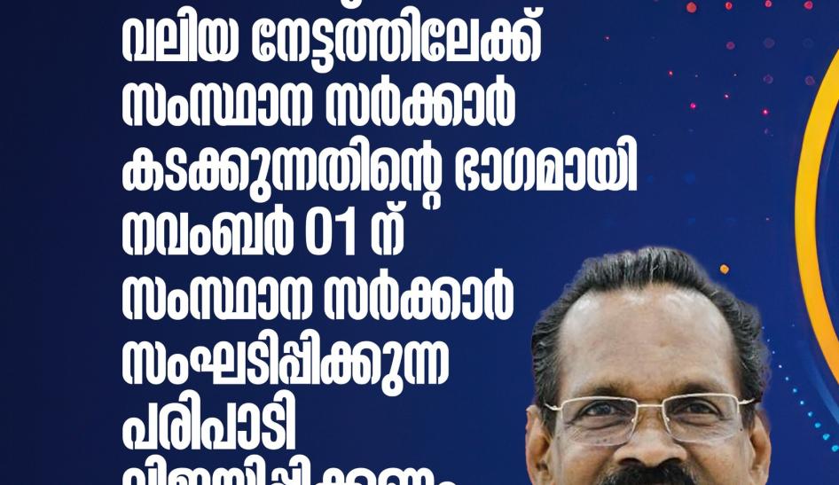അതിദാരിദ്ര്യം പരിഹരിക്കുകയെന്ന വലിയ നേട്ടത്തിലേക്ക് സംസ്ഥാന സര്ക്കാര് കടക്കുന്നതിന്റെ ഭാഗമായി നവംബര് 1-ാം തീയ്യതി സംസ്ഥാന സര്ക്കാര് സംഘടിപ്പിക്കുന്ന പരിപാടി വിജയിപ്പിക്കണം. വികസന രംഗത്ത് കേരളം തുടര്ച്ചയായി നേട്ടങ്ങള് നേടിക്കൊണ്ടിരിക്കുകയാണ്.