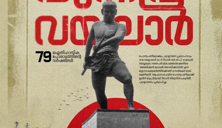 ഇന്ത്യൻ സ്വാതന്ത്ര്യ സമര ചരിത്രത്തിൽ ഐതിഹാസികമായ ഏട് എഴുതിച്ചേർത്ത പുന്നപ്ര-വയലാർ ജനകീയ മുന്നേറ്റത്തിന് 79 വയസ്സ്. ആധുനിക കേരളത്തിന്റെ രാഷ്ട്രീയ അജൻഡയ്ക്ക് രൂപംനൽകിയ ജനകീയവിപ്ലവങ്ങളിൽ എന്തുകൊണ്ടും പ്രഥമസ്ഥാനമാണ് പുന്നപ്ര–വയലാറിന്റേത്.