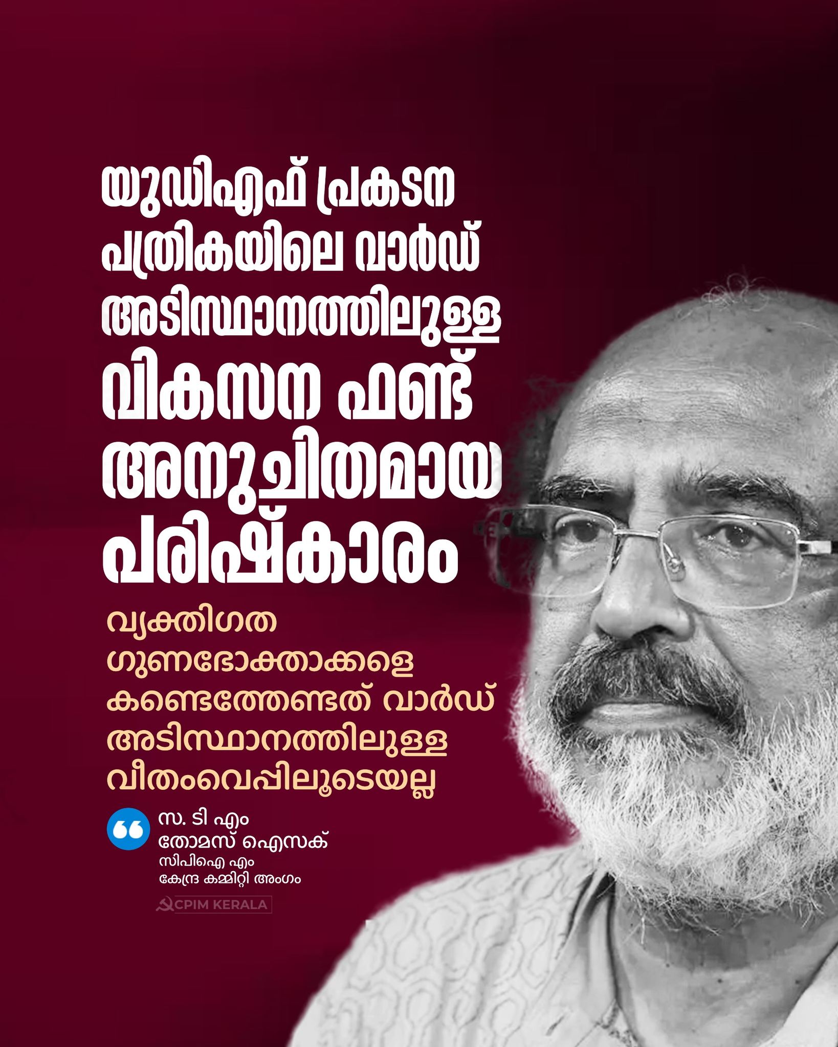 ഈ ഒരു പശ്ചാത്തലത്തിലാണ് യുഡിഎഫിന്റെ പ്രകടനപത്രികയിലെ വാർഡ് അടിസ്ഥാനത്തിലുള്ള വികസന ഫണ്ട് തികച്ചും അനുചിതമായ ഒരു പരിഷ്ക്കാരമായി മാറുന്നത്.