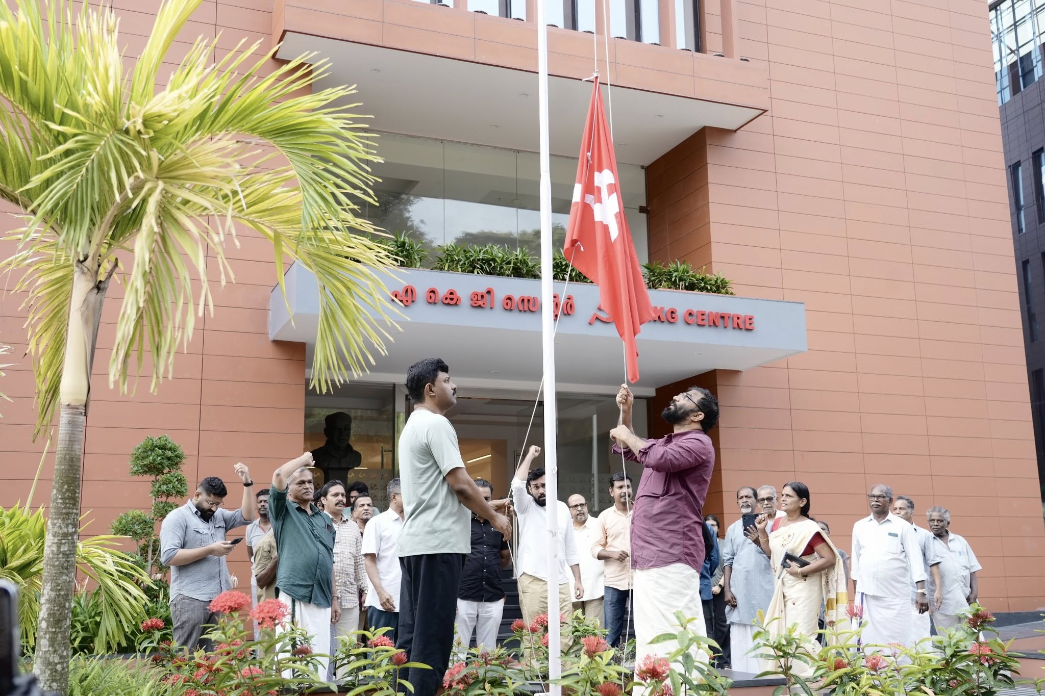 സഖാവ് കോടിയേരി ബാലകൃഷ്ണൻ ദിനത്തിൽ എകെജി സെന്ററിൽ സിപിഐ എം പോളിറ്റ് ബ്യുറോ അംഗം സ. വിജൂ കൃഷ്ണൻ പതാക ഉയർത്തി