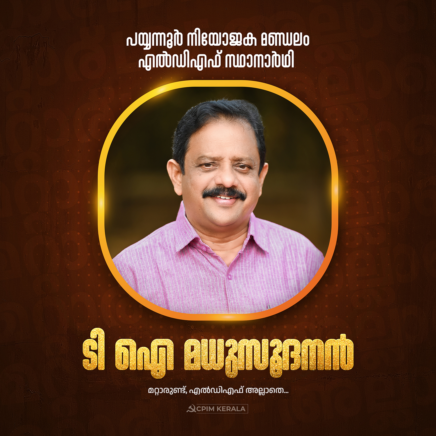 പയ്യന്നൂർ നിയോജക മണ്ഡലം എൽഡിഎഫ് സ്ഥാനാർഥി ടി ഐ മധുസൂദനൻ