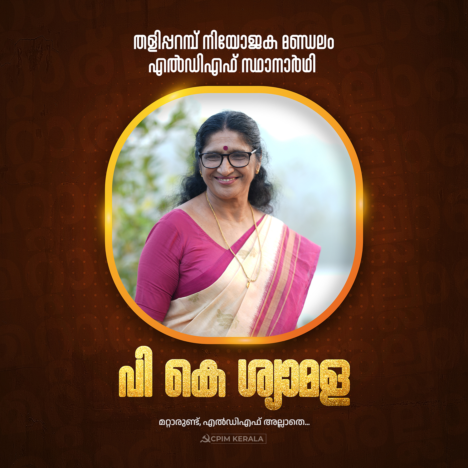 തളിപ്പറമ്പ് നിയോജക മണ്ഡലം എൽഡിഎഫ് സ്ഥാനാർഥി പി കെ ശ്യാമള ടീച്ചർ