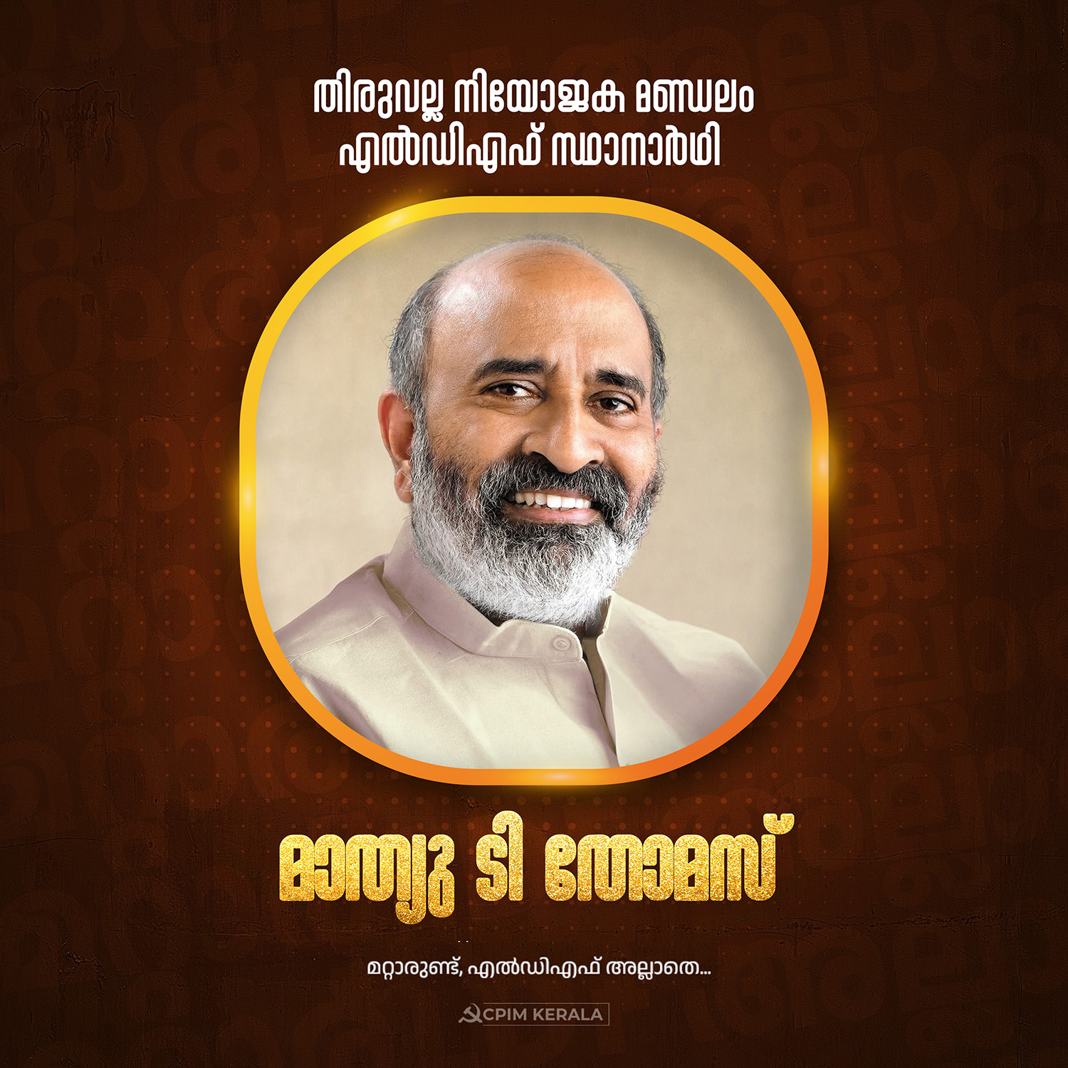തിരുവല്ല നിയോജക മണ്ഡലം എൽഡിഎഫ് സ്ഥാനാർഥി മാത്യു ടി തോമസ്