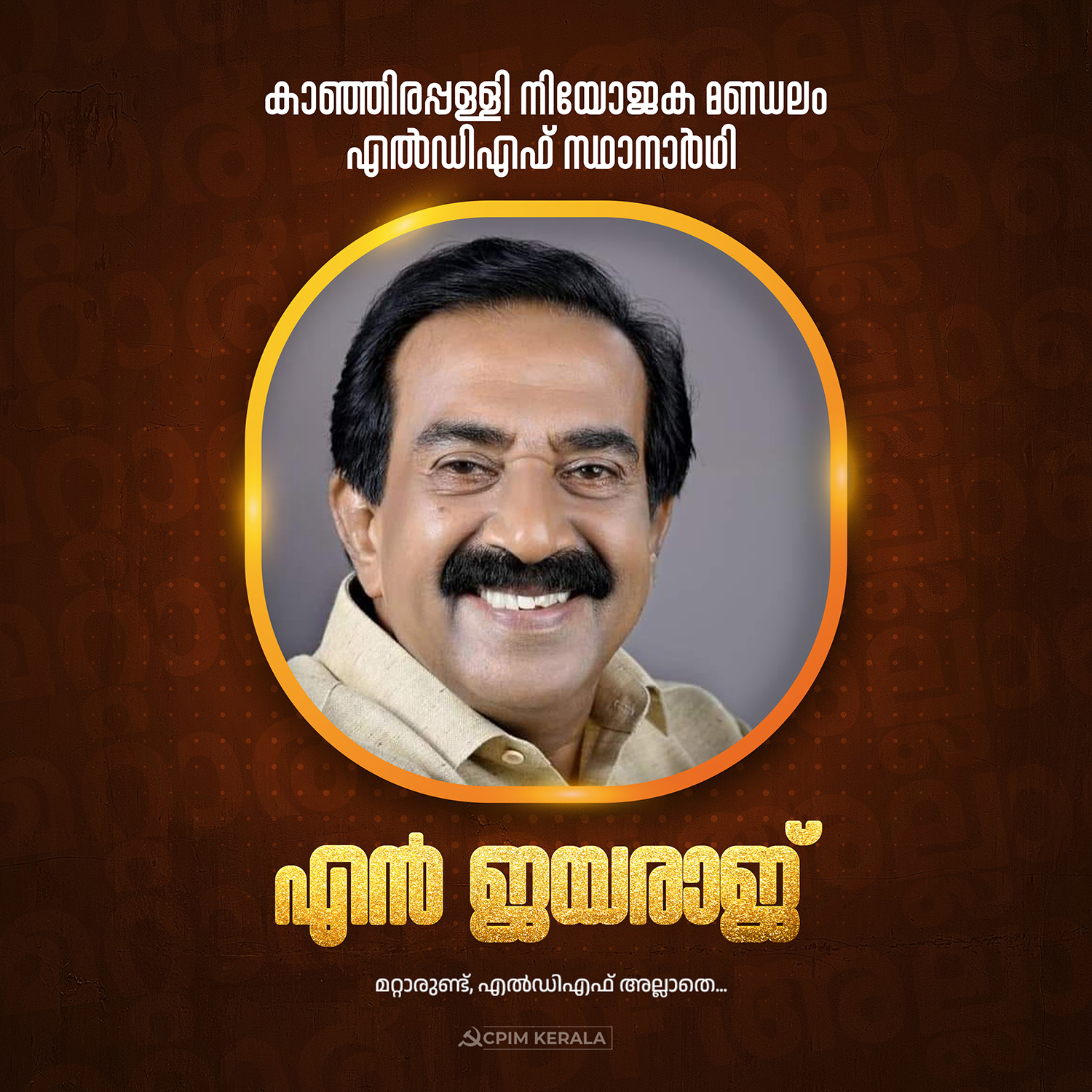 കാഞ്ഞിരപ്പള്ളി നിയോജക മണ്ഡലം എൽഡിഎഫ് സ്ഥാനാർഥി എൻ ജയരാജ്