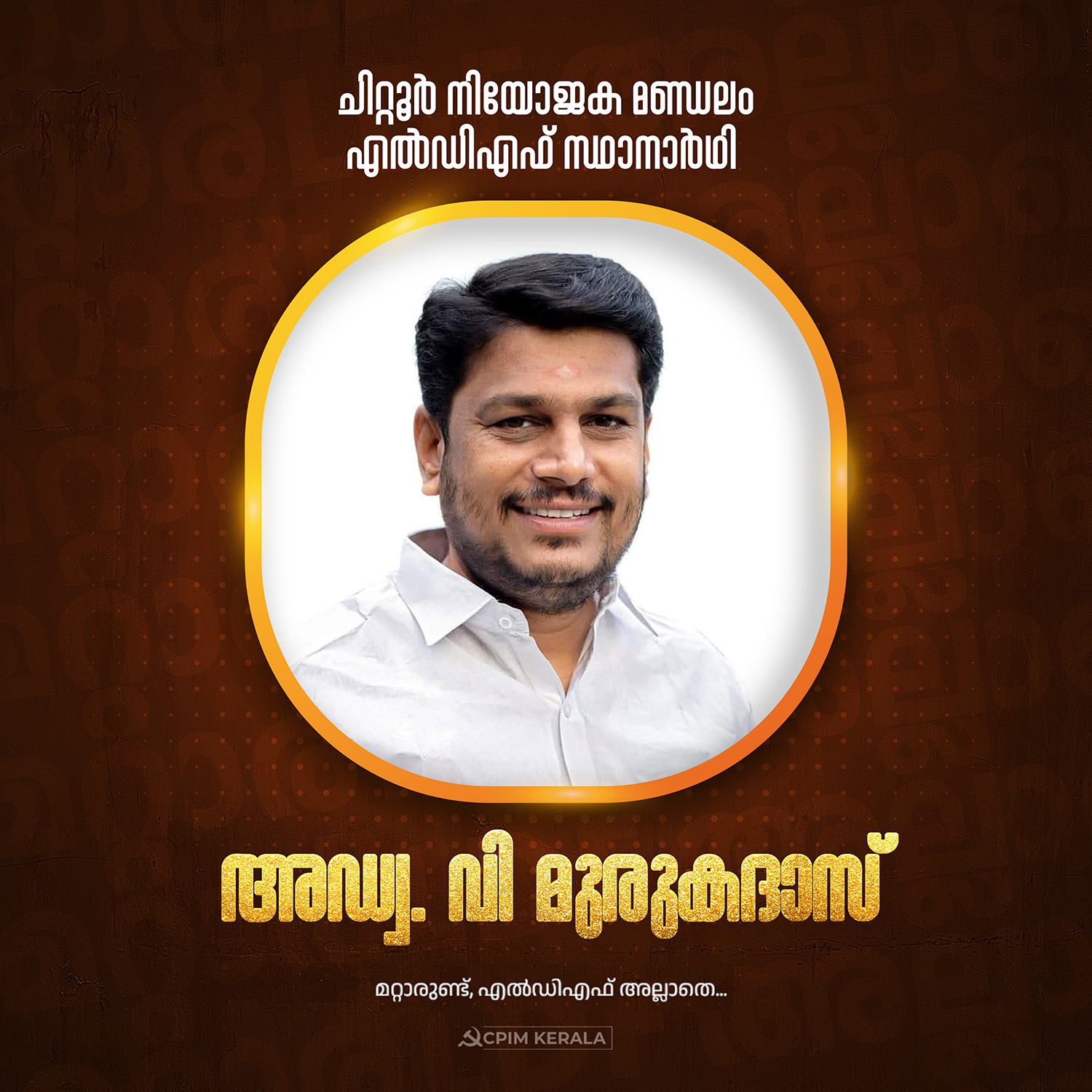 ചിറ്റൂർ നിയോജക മണ്ഡലം എൽഡിഎഫ് സ്ഥാനാർഥി അഡ്വ. വി മുരുകദാസ്