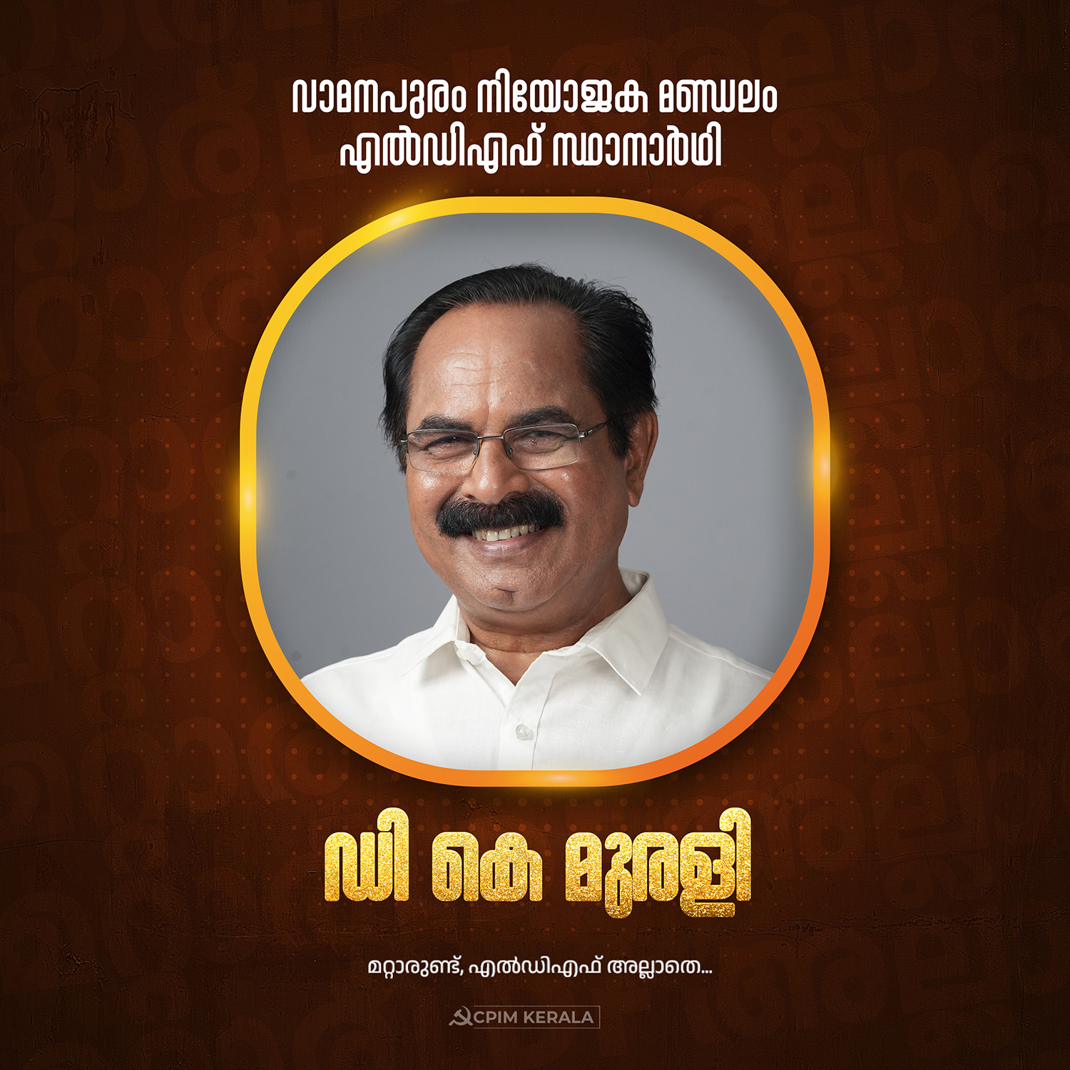 വാമനപുരം നിയോജക മണ്ഡലം എൽഡിഎഫ് സ്ഥാനാർഥി അഡ്വ. ഡി കെ മുരളി
