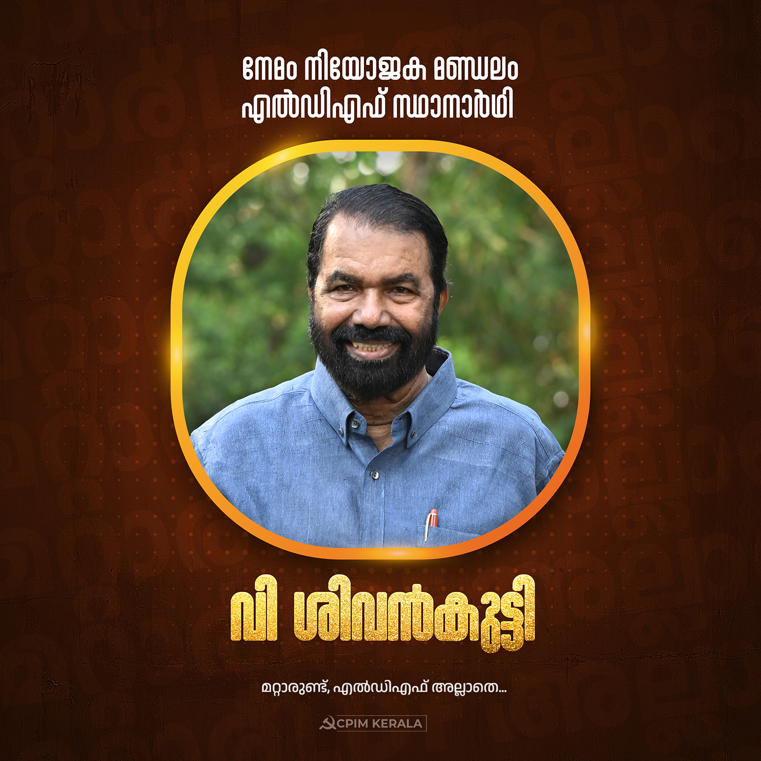 നേമം നിയോജക മണ്ഡലം എൽഡിഎഫ് സ്ഥാനാർഥി വി ശിവന്കുട്ടി