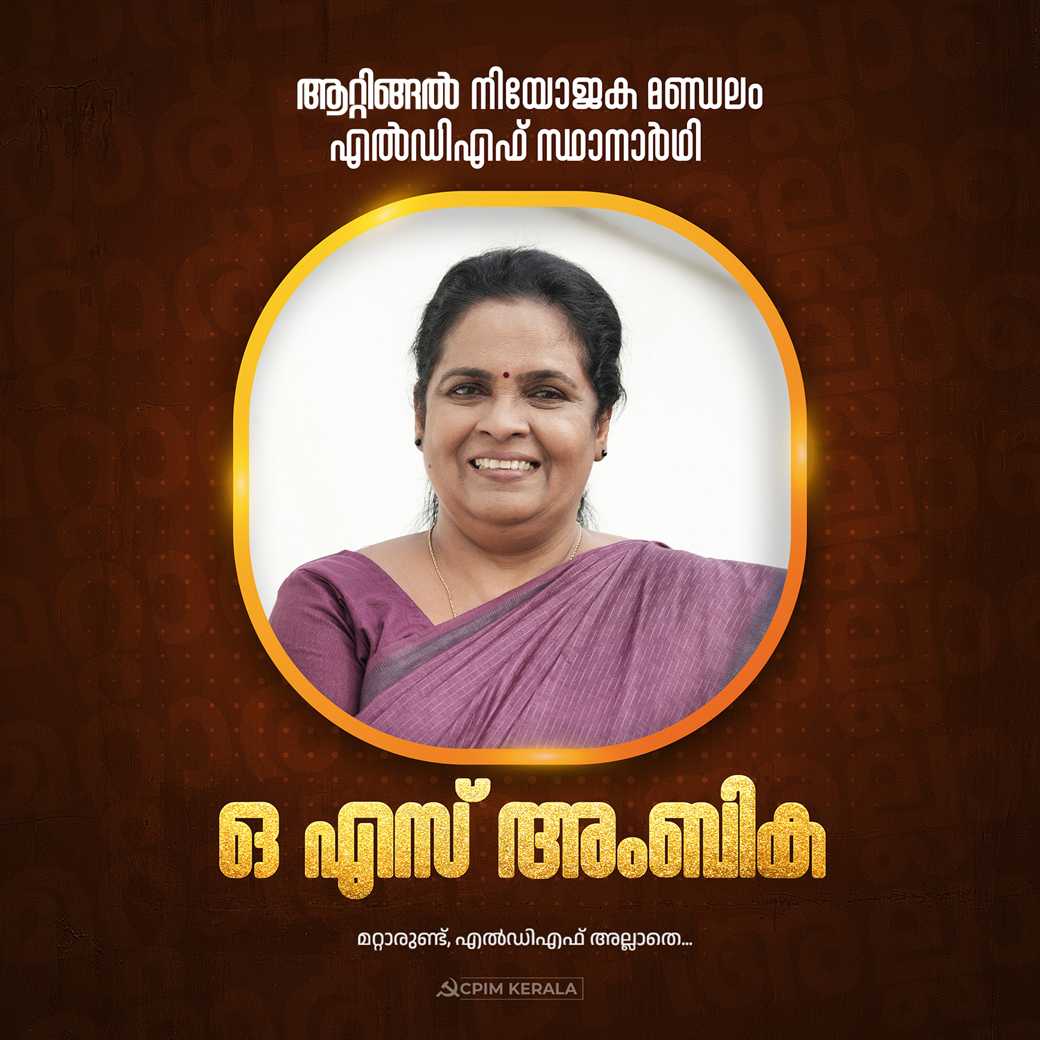 ആറ്റിങ്ങല് നിയോജക മണ്ഡലം എൽഡിഎഫ് സ്ഥാനാർഥി ഒ എസ് അംബിക