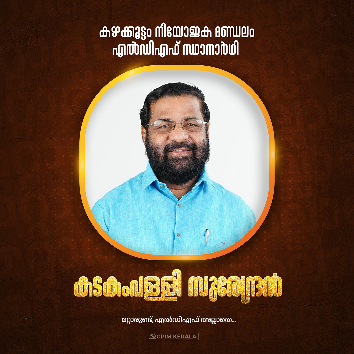 കഴക്കൂട്ടം നിയോജക മണ്ഡലം എൽഡിഎഫ് സ്ഥാനാർഥി കടകംപള്ളി സുരേന്ദ്രന്