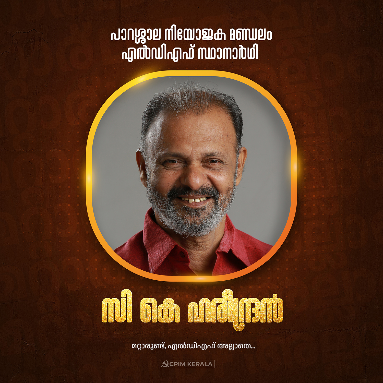 പാറശ്ശാല നിയോജക മണ്ഡലം എൽഡിഎഫ് സ്ഥാനാർഥി സി കെ ഹരീന്ദ്രന്