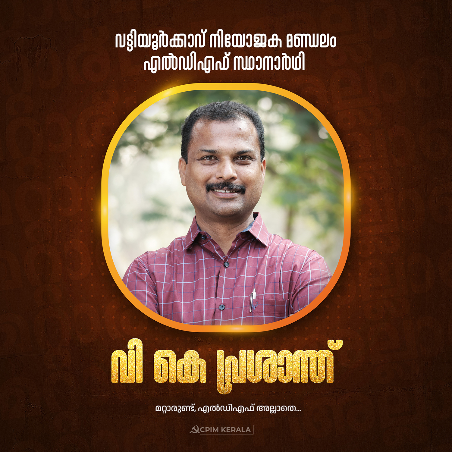 വട്ടിയൂര്ക്കാവ് നിയോജക മണ്ഡലം എൽഡിഎഫ് സ്ഥാനാർഥി അഡ്വ. വി കെ പ്രശാന്ത്