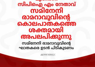 തെലങ്കാനയിലെ മുതിർന്ന സിപിഐ എം നേതാവ് സമിനേനി രാമറാവുവിന്റെ കൊലപാതകത്തെ ശക്തമായി അപലപിക്കുന്നു