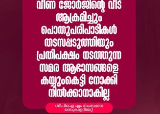 ആരോഗ്യ വകുപ്പ് മന്ത്രി വീണ ജോര്ജിന്റെ വീട് ആക്രമിച്ചും പൊതുപരിപാടികള് തടസപ്പടുത്തിയും പ്രതിപക്ഷം നടത്തുന്ന സമര ആഭാസങ്ങളെ കയ്യുംകെട്ടി നോക്കി നില്ക്കാനാകില്ല