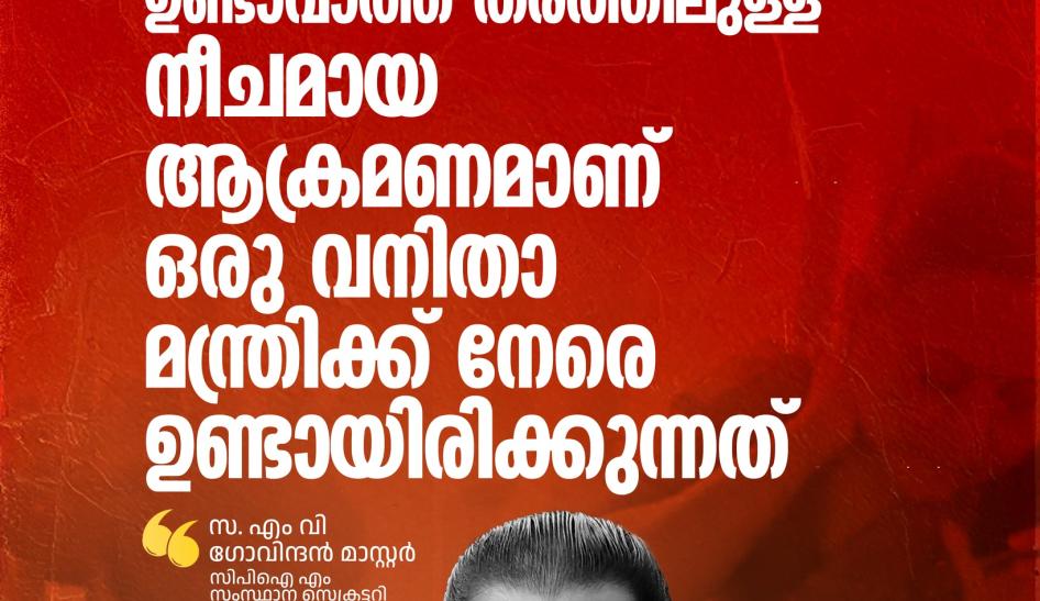 കേരളത്തിൻ്റെ രാഷ്ട്രീയ ചരിത്രത്തിൽ ഇന്നേവരെ ഉണ്ടാവാത്ത തരത്തിലുള്ള നീചമായ ആക്രമണമാണ് ഒരു വനിതാ മന്ത്രിക്ക് നേരെ ഉണ്ടായിരിക്കുന്നത്. കോൺഗ്രസിന്റെ വിദ്യാർത്ഥി സംഘടനയിലെയും യുവജന സംഘടനയിലെയും ക്രിമിനലുകൾ ആസൂത്രിതമായി നടത്തിയ ആക്രമണമാണിത്. മന്ത്രിയുടെ വീട് ആക്രമിച്ചതിന്റെ തുടർച്ചയാണിത്.
